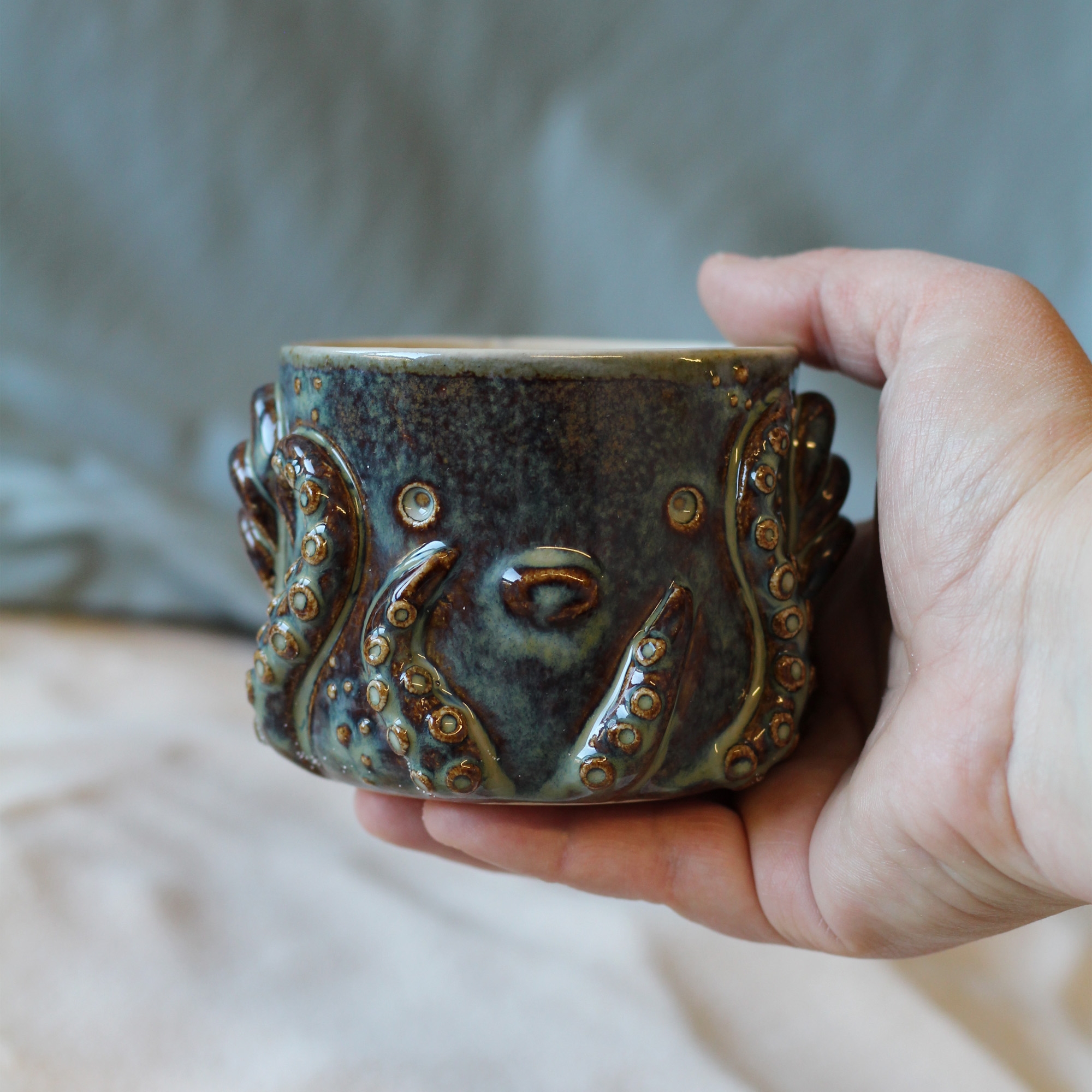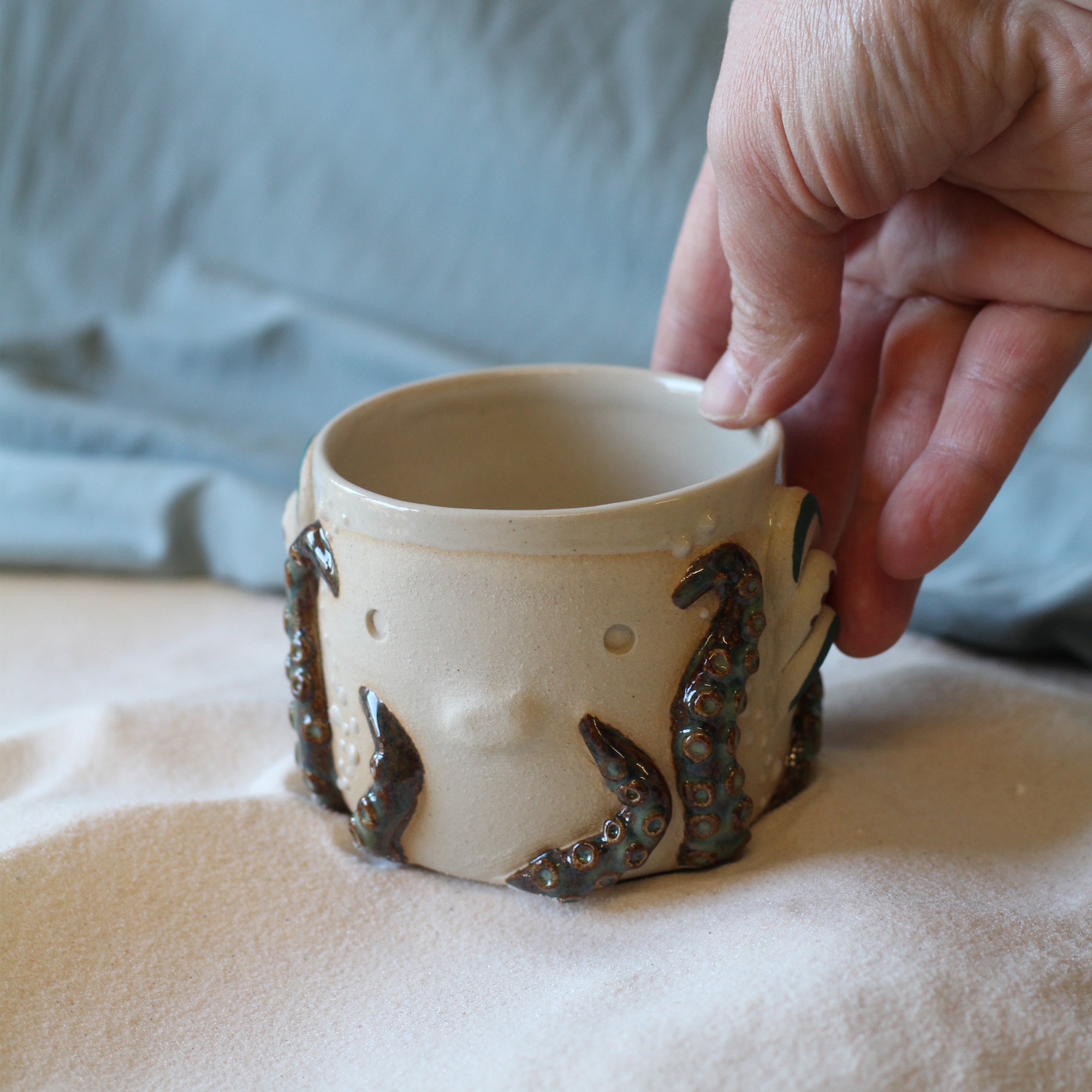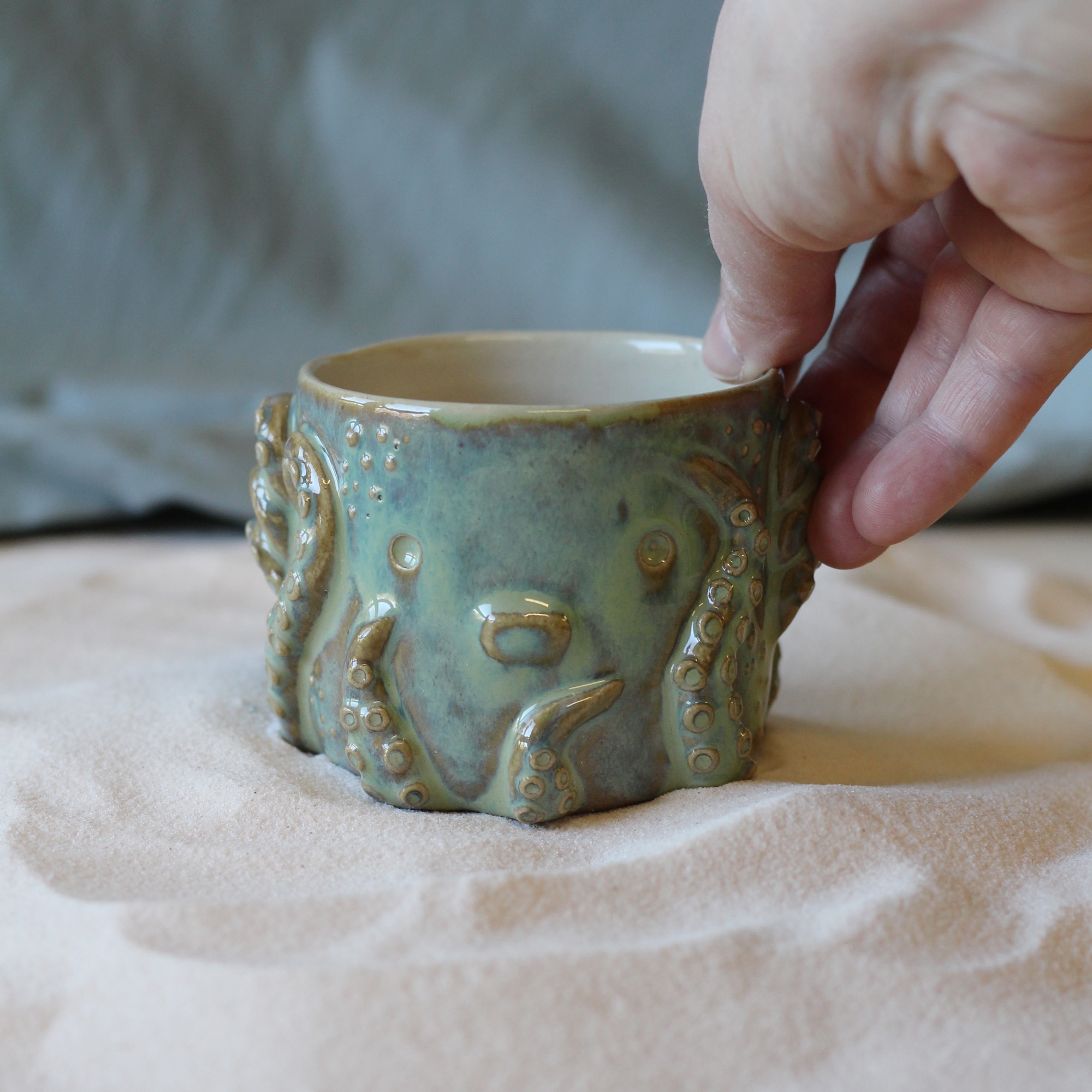 Les tasses Gardien Poulpi sont réalisées avec la technique du tournage.