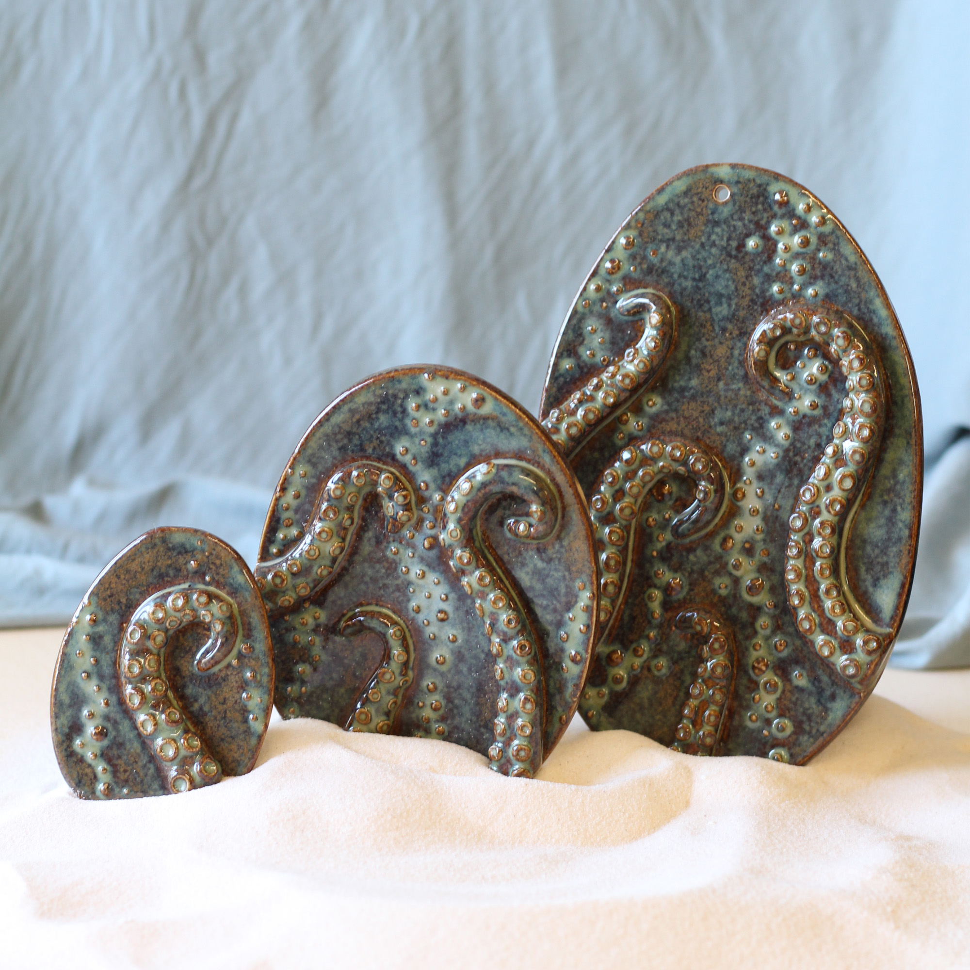 Comme pour les Gardiens et Hortus, les Poulpi's sont réalisées en grès blanc. Les tasses et mugs sont façonnées avec la techniques du tour et toutes les tentacules sont modelées une à une à la main.